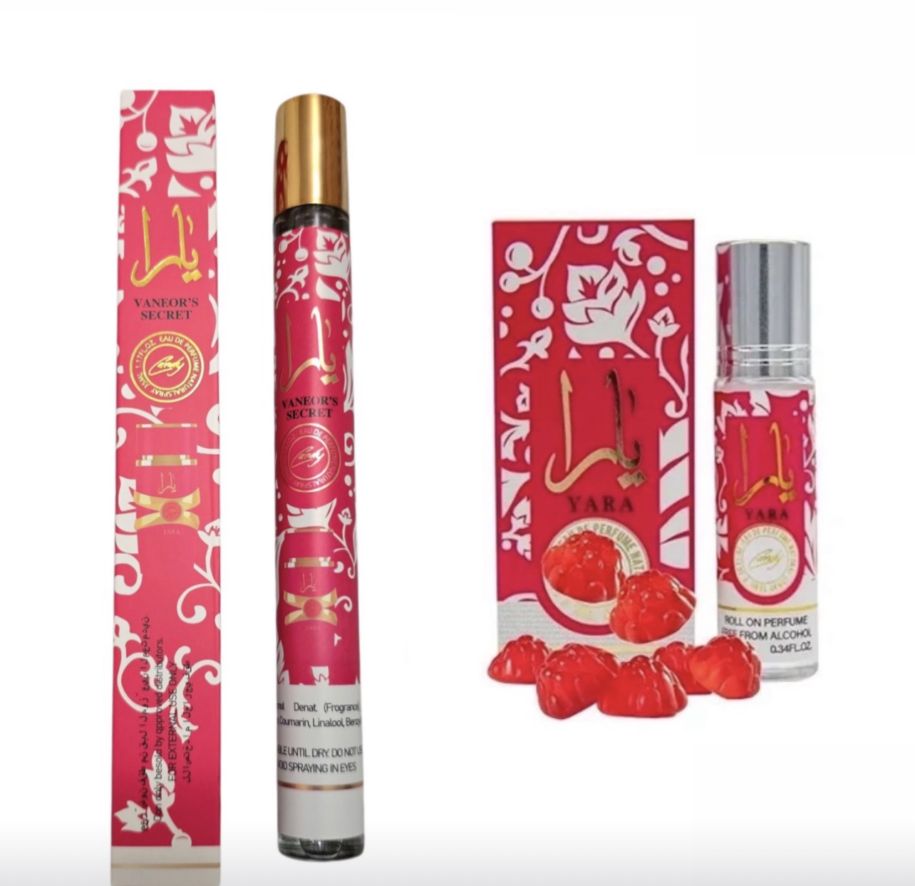 ست عطر ادکلن یارا صورتی رولی ۶ میل و ادکلن ۳۵ میل