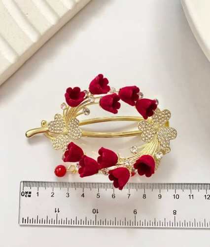 گیره فلزی موی گوجه ای نگین دار پروانه