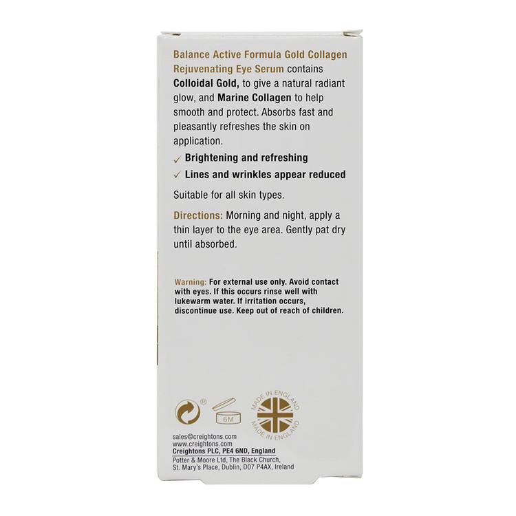 کننده 15 میلی لیتر ) Balance Active Formula Gold & Marine محصولی بسیار با کیفیت (Collagen Rejuvenating Eye Serum و تخصصی از برند حرفه ای بالانس و از کشور انگلستان می باشد. کرم دور چشم ضد چروک و تیرگی بالانس بتدریج چین و چروک های سطح پوست نواحی دور چشم بخصوص چروکهای پنجه کلاغی را از بین می برد و زیبایی و جذابیت را برای شما به ارمغان می آورد.