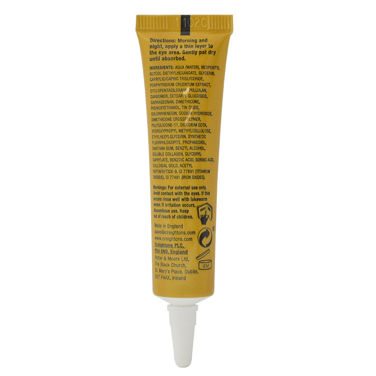 این محصول دارای طلا کلوئیدی ضد چین و چروک و کلاژن دریایی استحکام بخش پوست بوده و یک گزینه ایده آل برای تغذیه تقویت و ترمیم و بازسازی پوست نواحی اطراف چشم میباشد در واقع این کرم دور چشم لیفت کننده و ضد چروک با کیفیت هر چه تمام تر سبب لیفت و سفت شدن پوست نواحی اطراف چشم شده و با کمک به کلاژن سازی پوست از افتادگی و شل شدن آن جلوگیری نموده و آن را ،جوان شاداب و سفت و کشیده نشان می دهد.