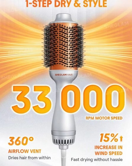 - موتور قدرتمند و خشککنندگی سریع: با سرعت موتور 33000 دور در دقیقه، این برس حرارتی قدرت کافی برای خشک کردن سریع موها را فراهم میکند و زمان لازم برای حالت دادن را کاهش میدهد.
