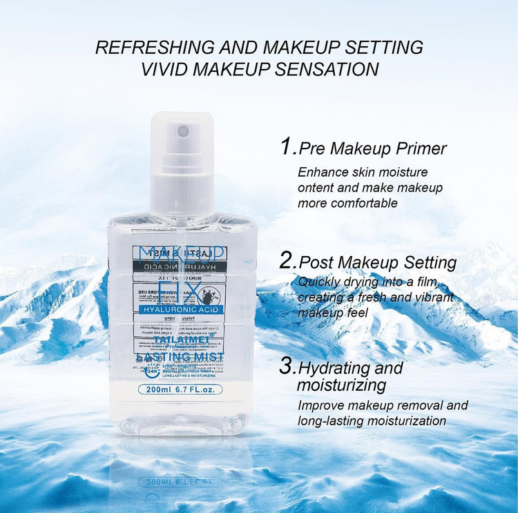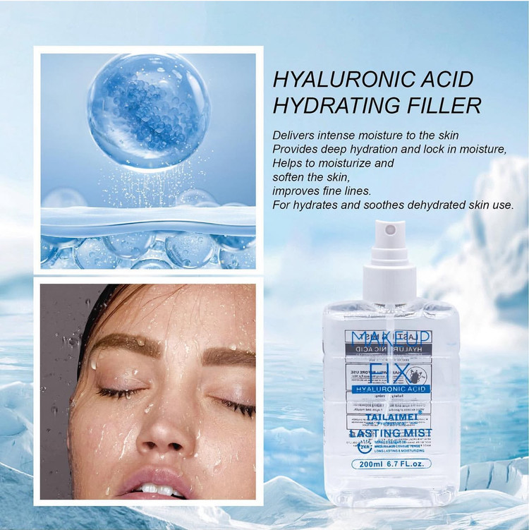 این محصول یک مِست تنظیمکننده آرایش از برند Tailaimei است که با فرمول هیالورونیک اسید طراحی شده است. این اسپری چندکاره بهطور همزمان میتواند بهعنوان پرایمر قبل از آرایش، تنظیمکننده بعد از آرایش و مرطوبکننده پوست عمل کند.