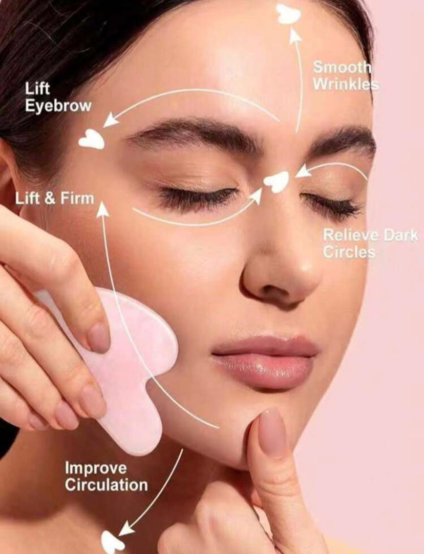 گواشا شبیه به ابزارهای ماساژ عمل می کند و باعث افزایش جریان خون می شود مردم چین باستان اعتقاد داشتند که این کار باعث می شود انرژی مثبت در سراسر بدن فرد پخش شود زیرا زمانی که جریان انرژی در بدن فرد مسدود می شود،التهاب و بیماری به وجود می آید. آن ها اعتقاد دارند که اگر سطح پوست را به آرامی ماساژ دهیم می توانیم جریان خون و انرژی را در بدن تحریک کنیم که فرآیند شفابخشی را افزایش می دهد. گواشا را می توان در تمام قسمت های بدن از جمله صورت نیز انجام داد. شدت و فشار این ضربه ها زمانی که به صورت شما وارد می شوند در مقایسه با دیگر قسمت های بدن بسیار آرام تر می باشند. این تکنیک به طور گسترده ای برای از بین بردن درد یا تسکین بدن و از بین بردن سفتی عضلات استفاده می شود.