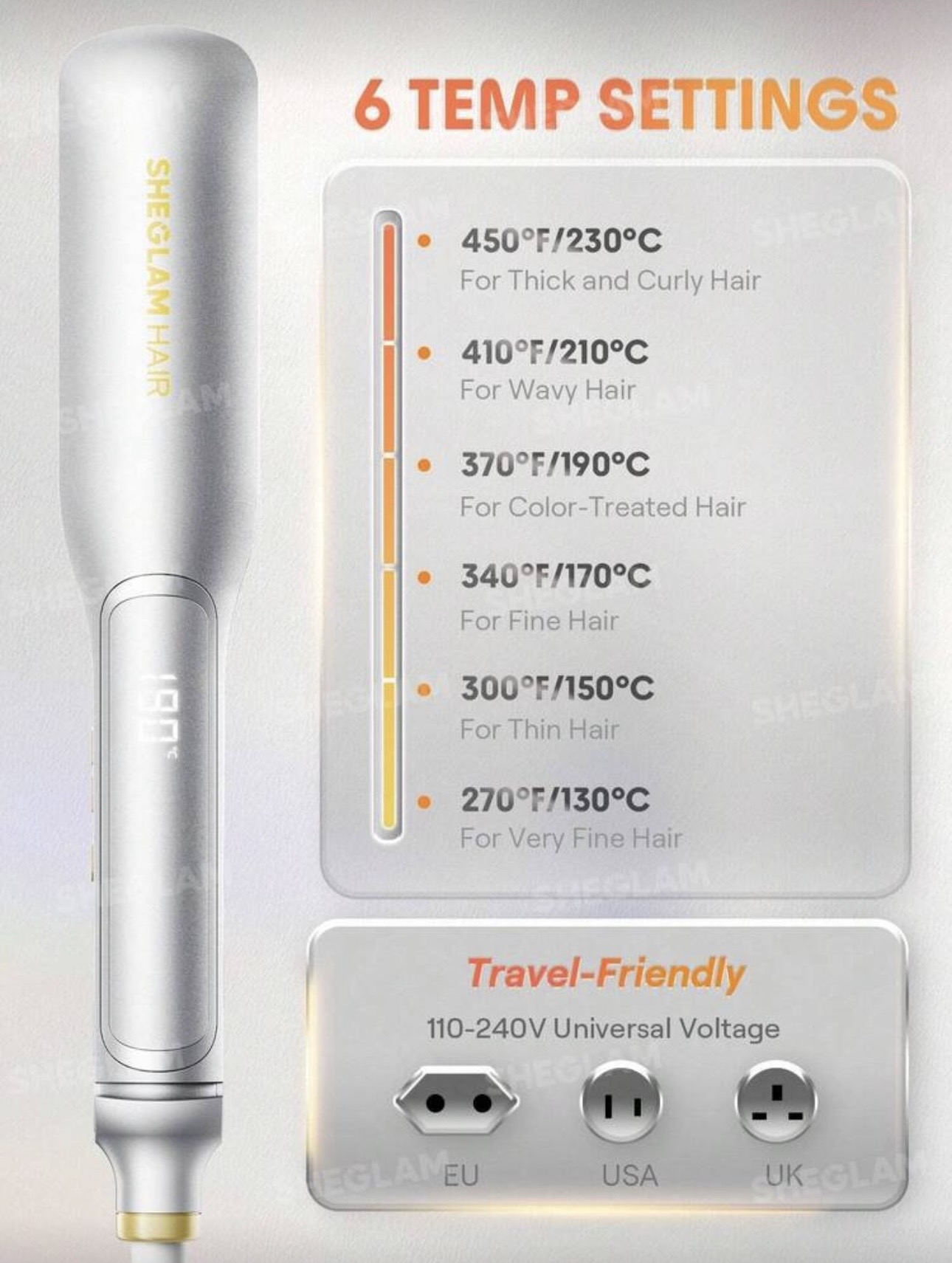 اتو مو صفحه پهن شانه دار شیگلم مدل sleek chic wide glide straightener