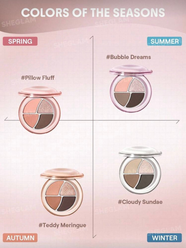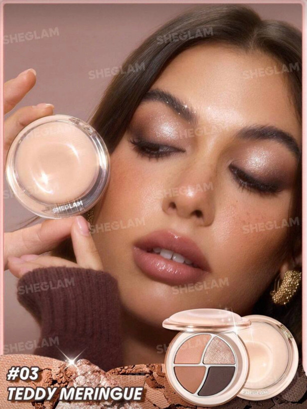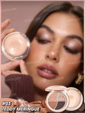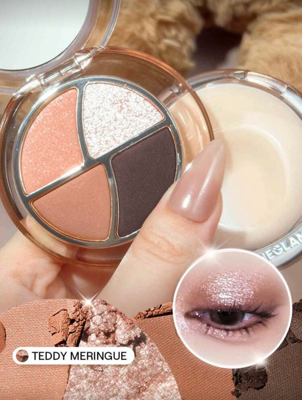 Daydreamer Mini Palette – Teddy Meringue یک پالت چشم مینی با ۴ رنگ دارد: سه رنگ مات ابریشمی و یک رنگ براق با افکت “wet-look” یا نیمهمرطوب. ترکیب این رنگها طیف ملایم تا براق را ارائه میدهد که مناسب استفاده روزمره و با قابلیت ترکیب آسان است .