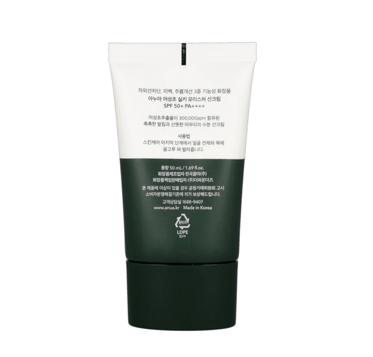 کرم ضد آفتاب مرطوب کننده و تسکین دهنده آنوا Anua Heartleaf Silky Moisture، یک ضد آفتاب فوقالعاده است که نه تنها محافظت عالی در برابر نور خورشید با طیف وسیع SPF 50+ PA++++ ارائه میکند، بلکه اصول مراقبت از پوست وگان و بدون ظلم را نیز در بر میگیرد. این کرم ضد آفتاب استثنایی از فیلترهای شیمیایی برای محافظت از پوست شما در برابر اشعه های مضر ماوراء بنفش استفاده می کند و از پوست ظریف شما در زیر نور خورشید محافظت می کند.