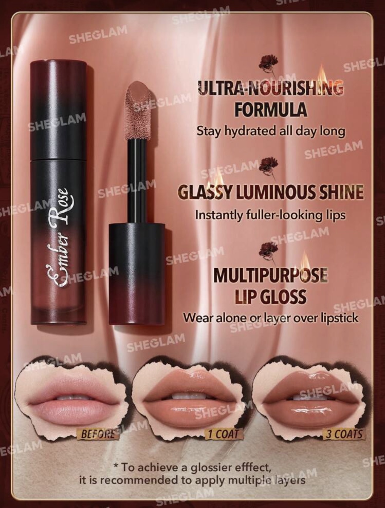 لیپ گلاس مغذی شیگلم کالکشن امبر رز مدل | SHEGLAM Nourishing Lip Gloss رنگ Amor