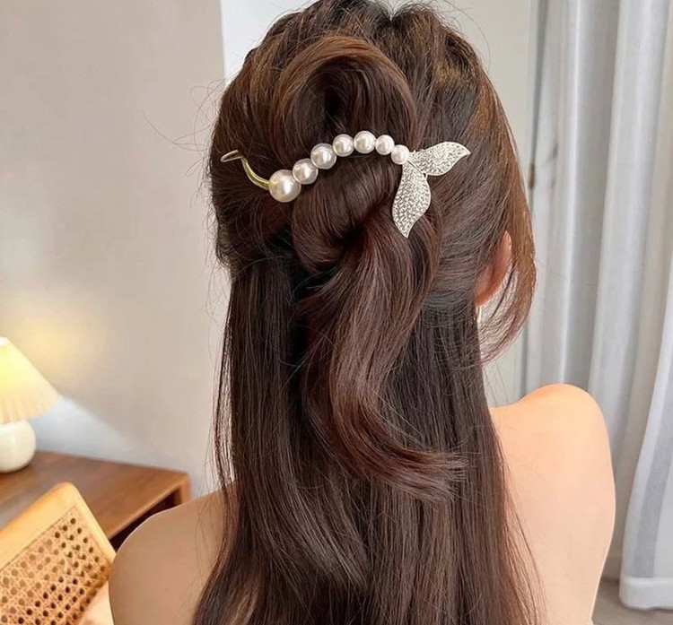 گیره مو فلزی دم ماهی مرواریدی