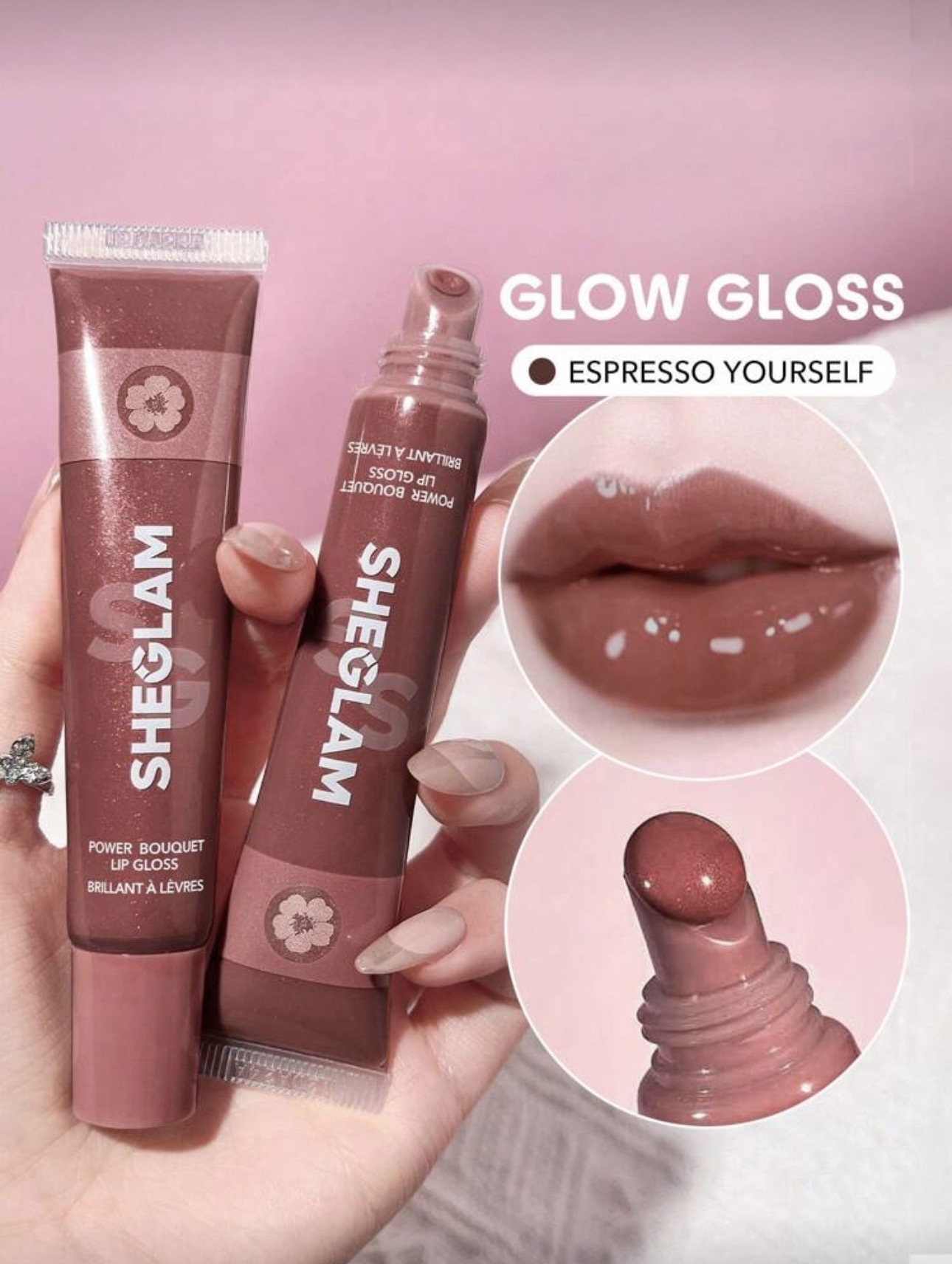 - لیپ گلاس شیگلم SHEGLAM مدل Power Bouquet رنگ ESPRESSO YOURSELF