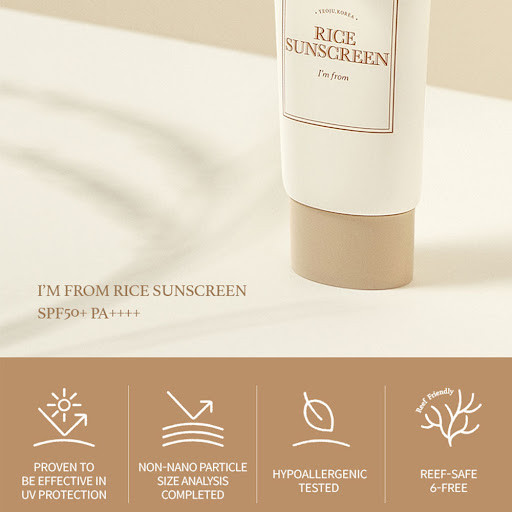 کرم ضد آفتاب آیم فرام یک ضد آفتاب معدنی است که حاوی 41 درصد عصاره برنج گوامی از Yeoju، کره جنوبی است که میتواند به حذف ناخالصیهای پوست برای بافت پوست نرمتر و صافتر و رنگ روشنتر کمک کند. کرم ضد آفتاب برنج آزمایش SPF را روی پوست انسان با نتیجه SPF 50+ PA++++ انجام داده است. حاوی اکسید روی غیر نانویی است که می تواند هم UVA و هم UVB را مسدود کند و احتمال کمتری برای نفوذ به پوست انسان دارد و حاوی اکسی بنزون و اکتینوکسات نیست که برای اکوسیستم مرجانی و دریایی مضر است. ضد آفتابی که نه تنها از پوست در برابر اشعه ماوراء بنفش محافظت می کند، بلکه در عین حال اثرات بسیار خوبی در تسکین و آرامش پوست تحریک شده توسط اشعه ماوراء بنفش دارد. به عنوان یک ضد آفتاب با پایه 100% معدنی، دارای بافت مرطوب و ابریشمی است که به آرامی پوشش می دهد و به سرعت با پوست ترکیب می شود بدون اینکه چسبندگی ایجاد کند. این محصول همچنین دارای رایحه ای مطبوع است که برای کسانی که محصولات مراقبت از پوست معطر را ترجیح می دهند توصیه می شود.