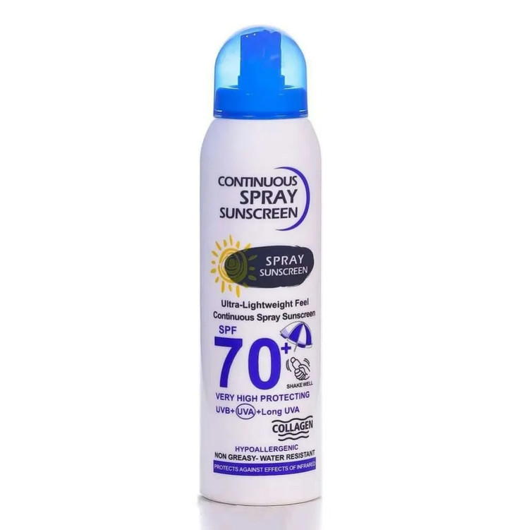 اسپری ضد آفتاب وکالی SPF 70 محافظت بسیار بالایی در برابر UVA + UVB دارد ، حاوی کلاژن و مولتی ویتامین می باشد که برای جوان سازی پوست بسیار موثر است.
