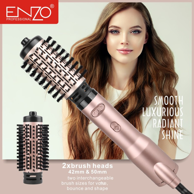سشوار چرخشی انزو پروفیشینال enzo professional مدل en-741 با دو سری برس چرخشی با اندازههای 42 و 50 میلیمتر عرضه میشود که به شما اجازه میدهد تا با توجه به نیاز و نوع موهای خود، برس مناسب را انتخاب کنید. علاوه بر این، این دستگاه دارای حلقه آویختن است که نگهداری و دسترسی به آن را آسانتر میکند. سیم 360 درجه چرخشی سشوار چرخشی انزو 741 نیز از پیچ خوردن و گره خوردن سیم جلوگیری کرده و استفاده از دستگاه را بسیار راحتتر و ایمنتر میسازد.