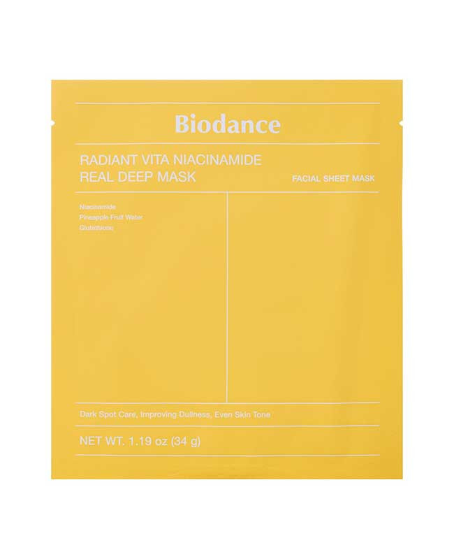ماسک ورقه ای زرد بایودنس حاوی نیاسینامید Biodance RADIANT VTA NIASINAMIDE