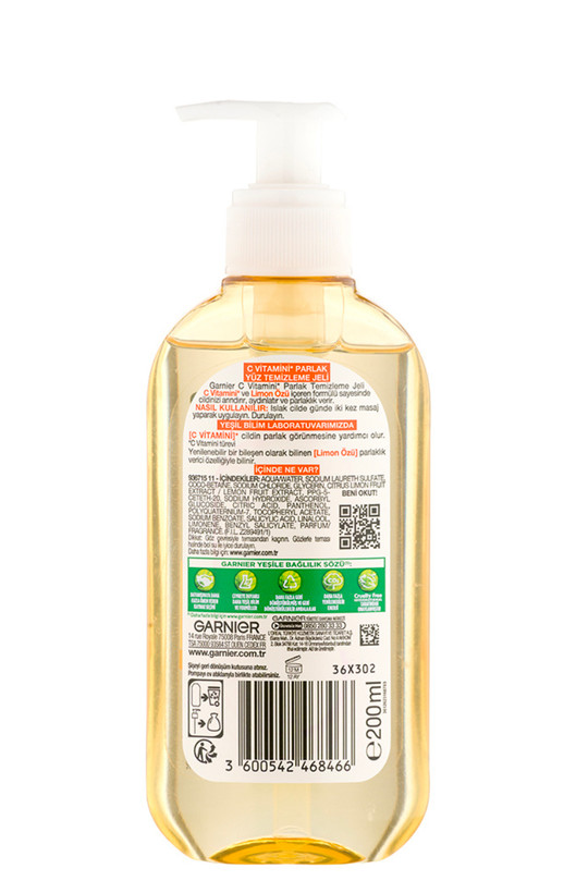 ژل شستشوی صورت مدل Vitamin C گارنیر، حاوی ویتامین سی وعصارهی لیمو بوده که به از بین بردن جای جوش و لک کمک شایانی میکند. این محصول فاقد تست حیوانی بوده و استفاده از آن برای تمامی افراد مناسب و قابل استفاده است. یکی از ویژگیهایی که ژل شستشوی صورت گارنیر به همراه دارد این است که به حفظ رطوبت پوست کمک شایانی کرده و موجب روشن و شفاف کنندهتر شدن پوست نیز میشود.