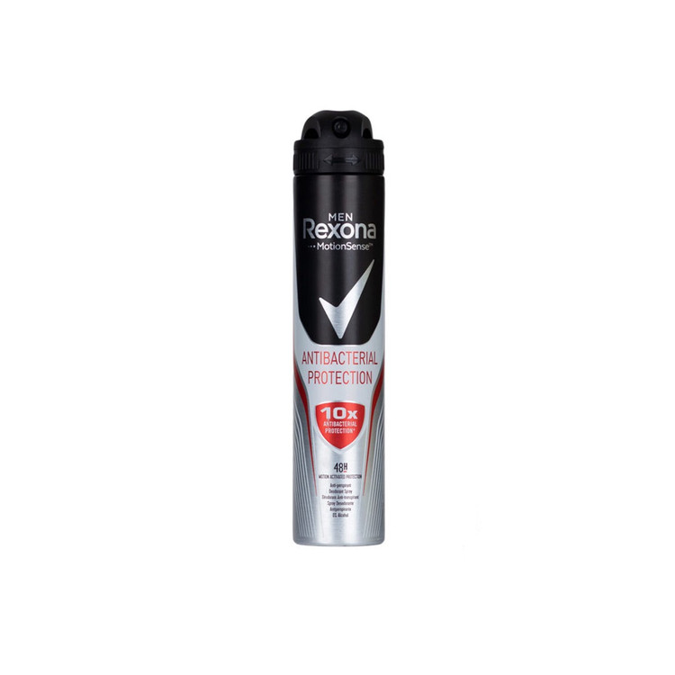 اسپری مردانه رکسونا Rexona Antibacterial Protectionمحافظت کننده فعال در برابر باکتری های ایجاد کننده بوی نامطبوع عرق است و از ایجاد لک و سفیدی روی لباس جلوگیری میکند. این محصول دارای تکنولوژی موشن سنس جهت محافظت کامل از خشکی زیر بغل در حرکت و شرایط پر تحرک است. این محصول درب ندارد اما نازل آن مجز به قفل است. وجود قفل موجب میشود وقتی اسپری داخل کیف و تحت فشار است به صورت خودکار عمل نکند و خالی نشود.دارای قدرت آنتی باکتریال 10 برابر بیشتر جهت از بین بردن باکتری های ایجاد کننده بوی نامطبوع عرق می باشد. حجم این اسپری 200 میلی لیتر است که برای استفاده روزانه ی فرد کافی خواهد بود.