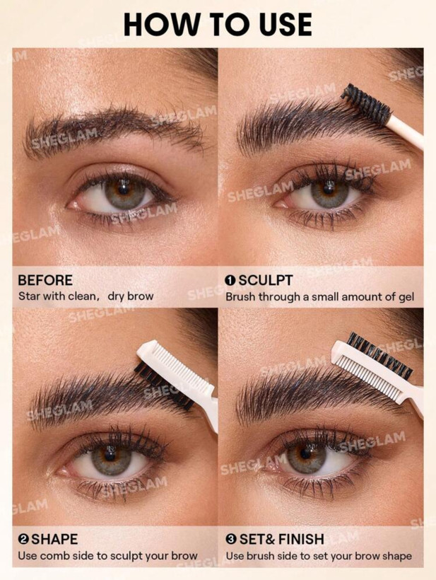 - اگر ابروهای ضخیم دارید و میخواهید تا مدت طولانی تری لیفت بمانند کافیست اپلیکاتور آغشته به ژل ابرو ضد آب شیگلم را از ریشه تا انتهای ابرو ها با فشار بیشتر روی ابروهایتان بکشید.