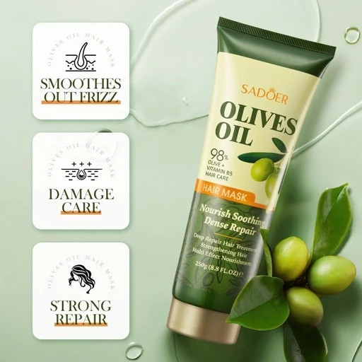 ماسک مو ترمیم کننده و رفع خشکی زیتون سادور حجم ۲۵۰ گرم SADOER OLIVE OIL HAIR MASK 250 G