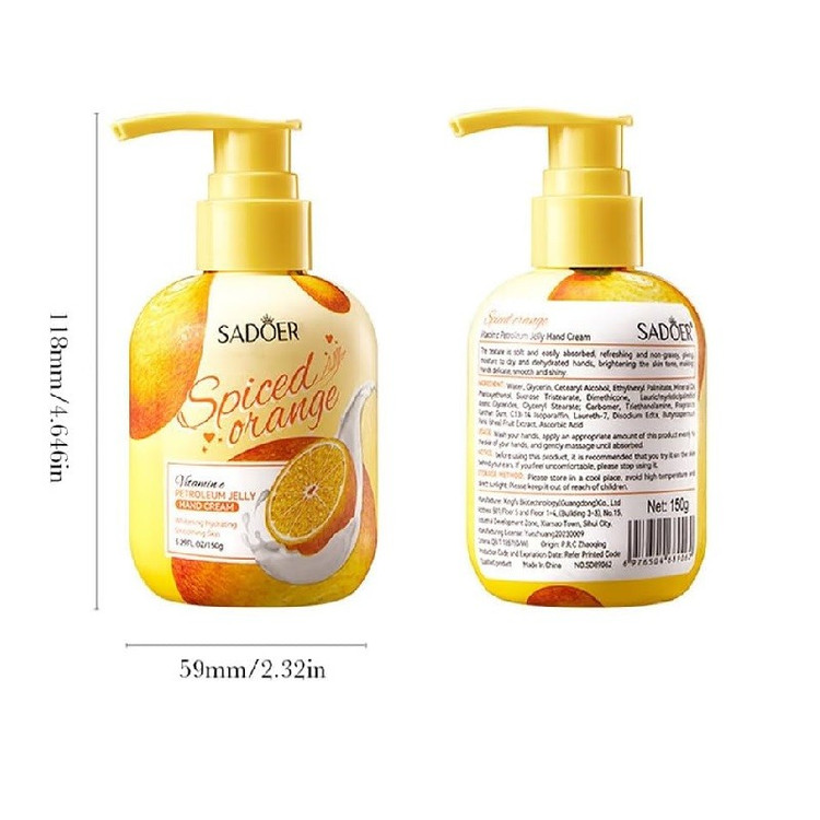 کرم دست ژله ای پمپی عصاره پرتقال ویتامین C سادور SADOER SPICED ORANGE VITAMIN C PETROLEUM JELLY HAND CREAM