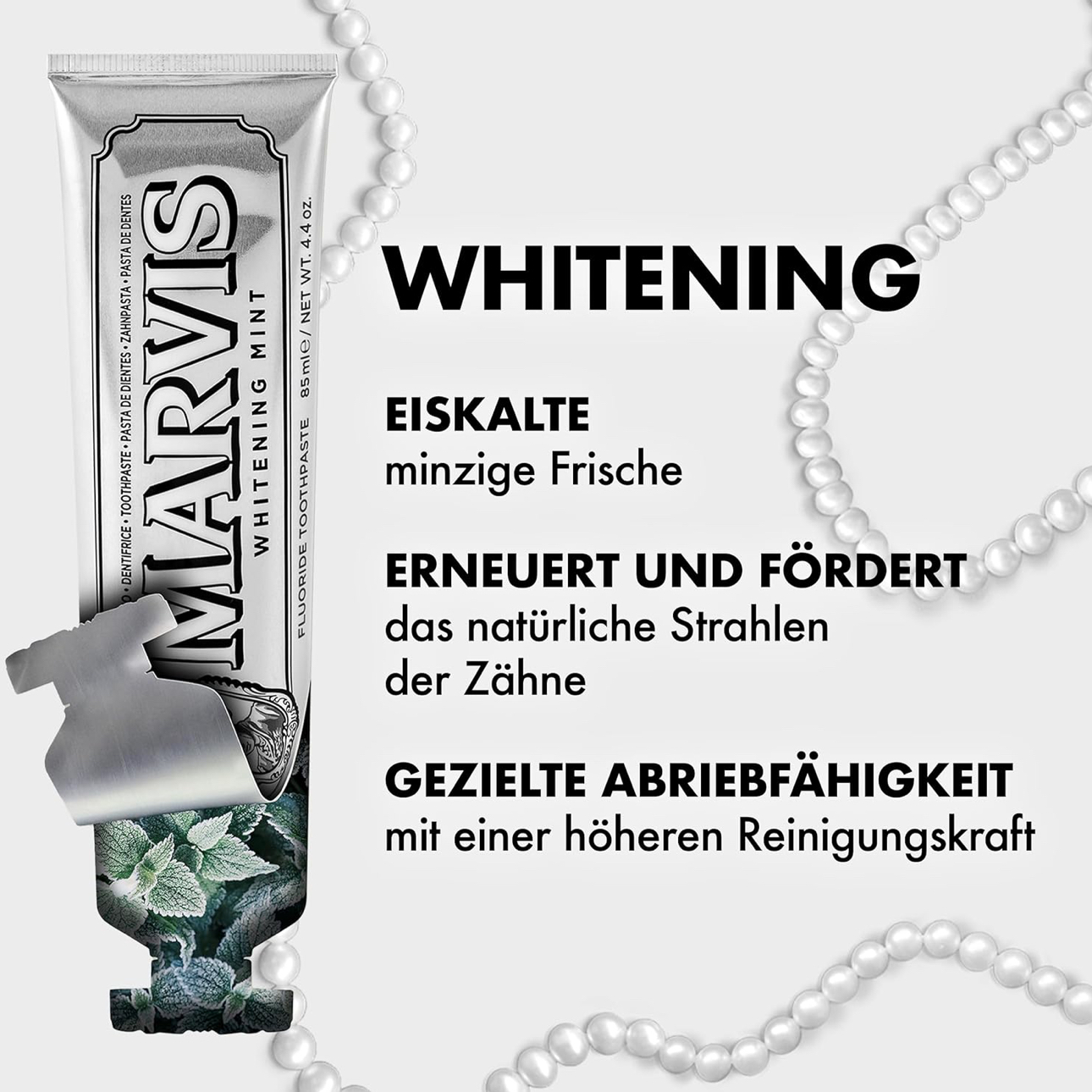 خمیر دندان سفید کننده مارویس یک خمیر دندان روزانه با مواد مینرال بوده که به شدت با پوسیدگی دندان ها مقابله می کند. این خمیر دندان دارای طعم قوی نعناع بوده که رایحه آن برای مدت طولانی در دهان مانده و از بوی بد دهان کاملا جلوگیری می کند.
