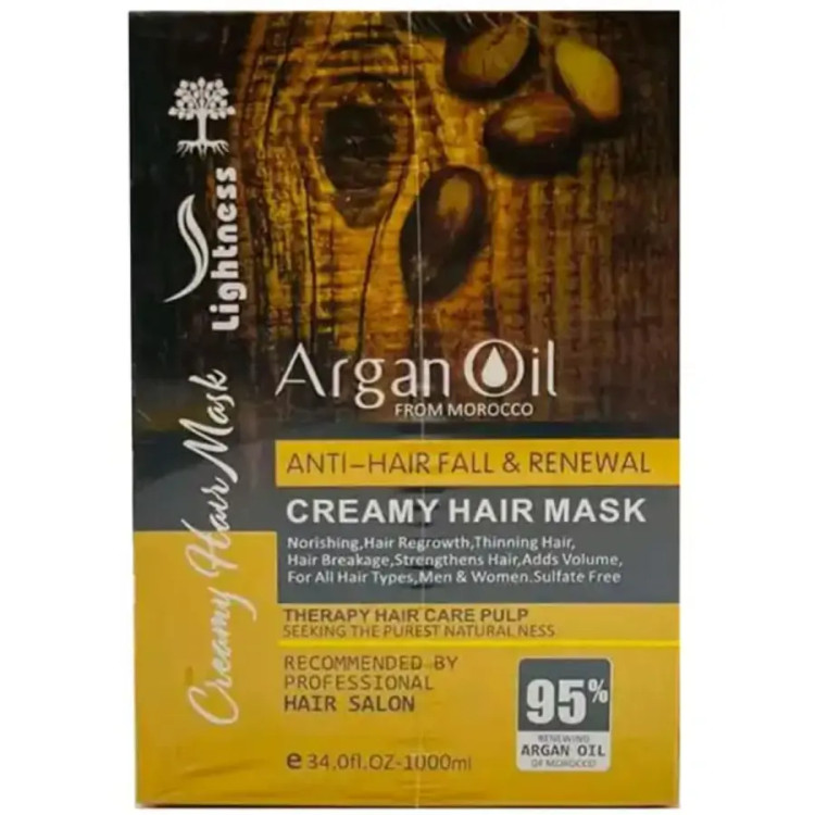 ماسک مو لایتنس، حاوی ۹۵ درصد روغن آرگان یک محصول فوق العاده برای انواع مو به ویژه موهای خشک و آسیب دیده است، این محصول بافت موها را به صورت عمقی آبرسانی کرده و احیا کننده است. روغن آرگان موجود در این ماسک مو باعث تقویت ساختار مو شده و از ریزش مو جلوگیری می کند.
