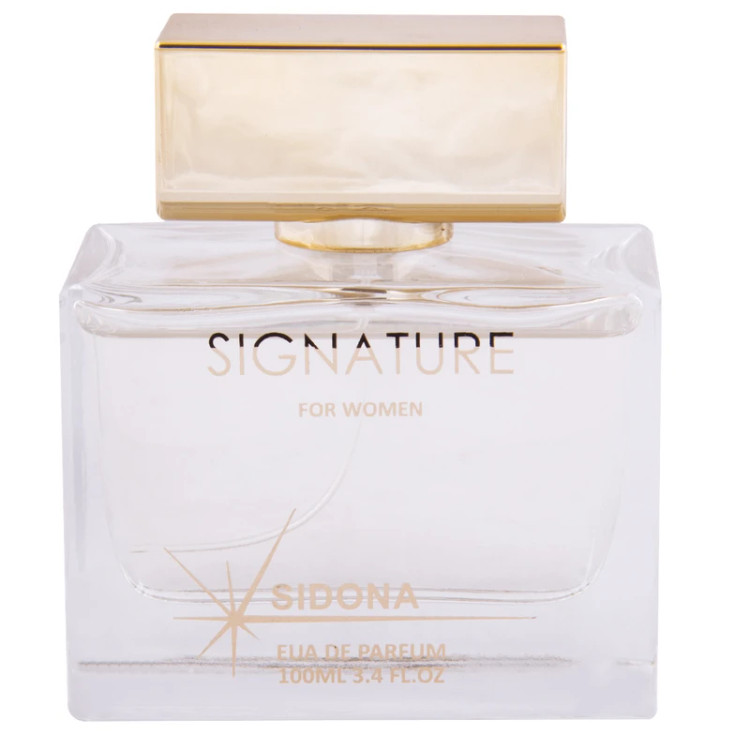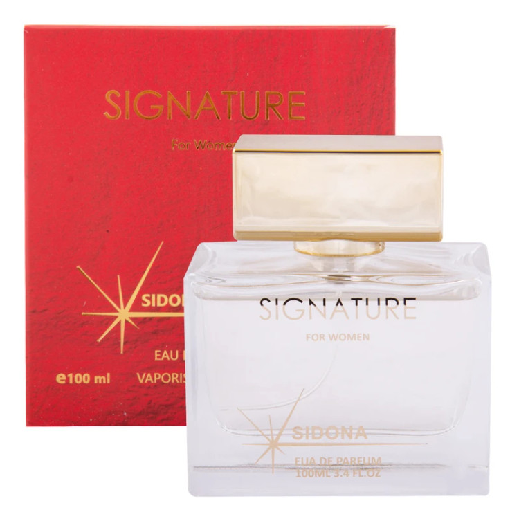 ادو پرفیوم زنانه سیدونا مدل Signature برگرفته از عطر زنانه جورجیو آرمانی Si بوده که در سال 2013 به بازار عرضه شده است. این عطر با رایحه گرم و شیرین بهترین انتخاب برای فصل پاییز و زمستان است تا حس وقار و جذابیت را در شما دو چندان کند. برند سیدونا با الهام از ترکیبات بویایی عطرهای معروف دنیا توانسته است سهم بزرگی از بازار را به دست آورد. با اسپری کردن مقداری از عطر زنانه سیگنیچر سیدونا ابتدا بویی از نت اولیه برگ و جوانه انگور فرنگی را احساس خواهید کرد. بعد از گذشت مدت زمانی این بو تغییر کرده و جای خود را به نت میانی گل رز، گل پیاز خواهد داد. در پایان نیز میتوان بویی از نتهای چوبی، نعناع هندی، وانیل را استشمام نمود.