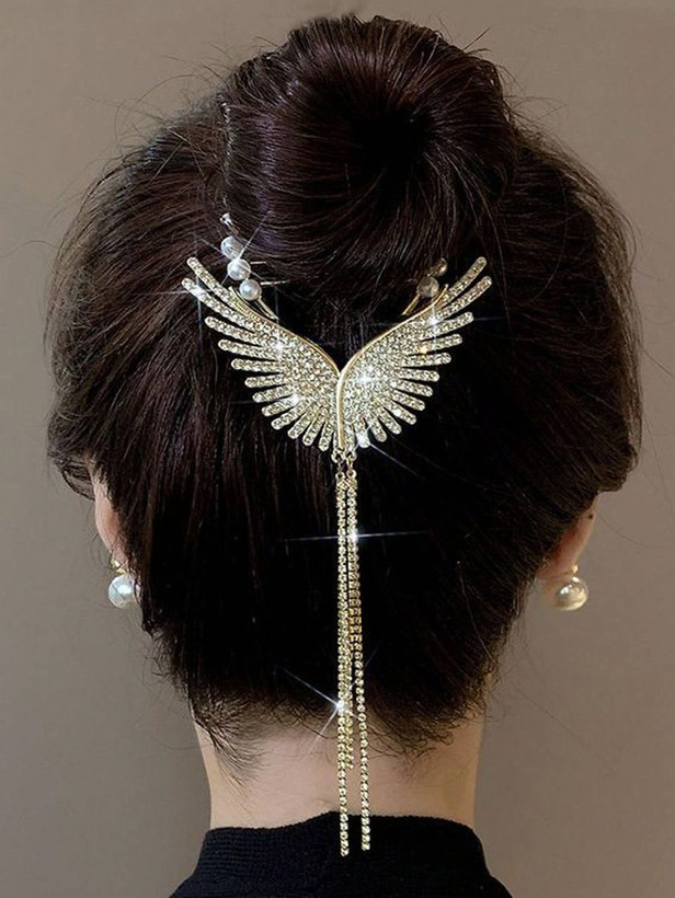 گیره فلزی موی گوجه ای نگین دار پروانه